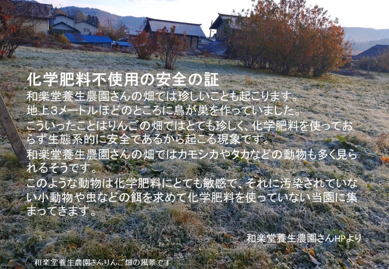 青森県の和楽堂養生農園さんが土作りから研究され、丹精込めて育てられたりんごは栄養価が高く『薬になるりんご』と呼ばれています。