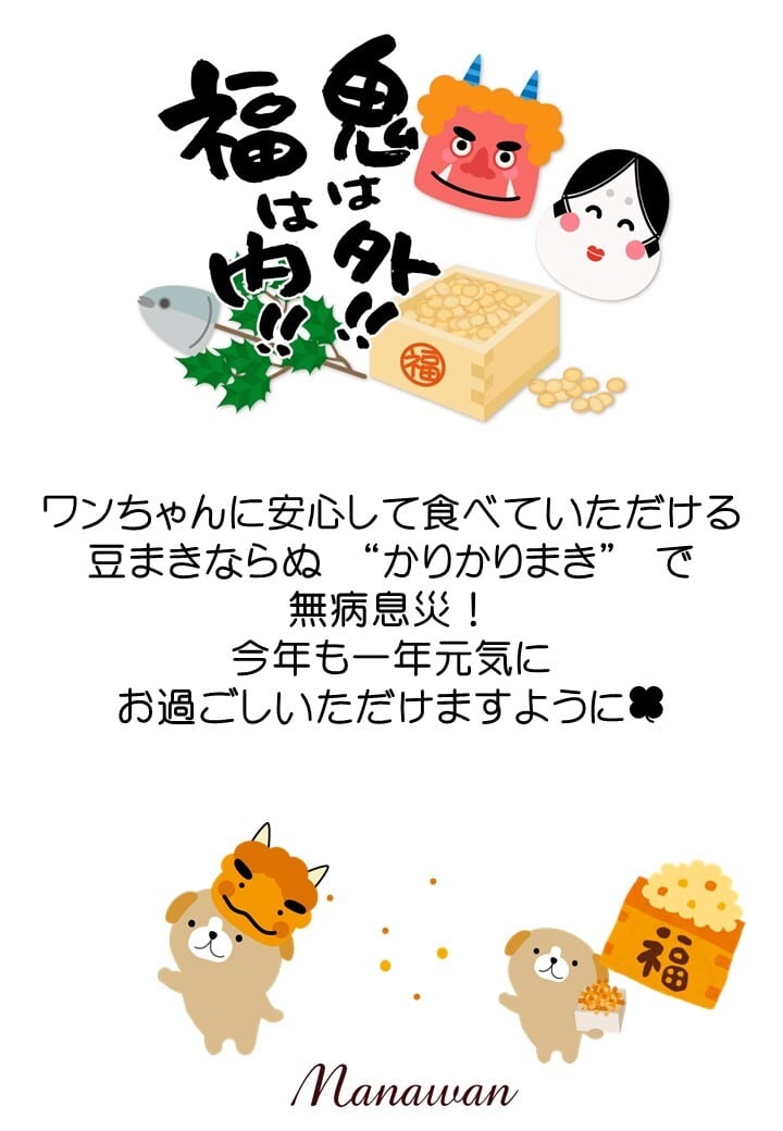豆まきならぬ マナワンのかりかりまきで邪気を追い払い愛するワンちゃん達に元気いっぱいお過ごしいただけますように☆彡