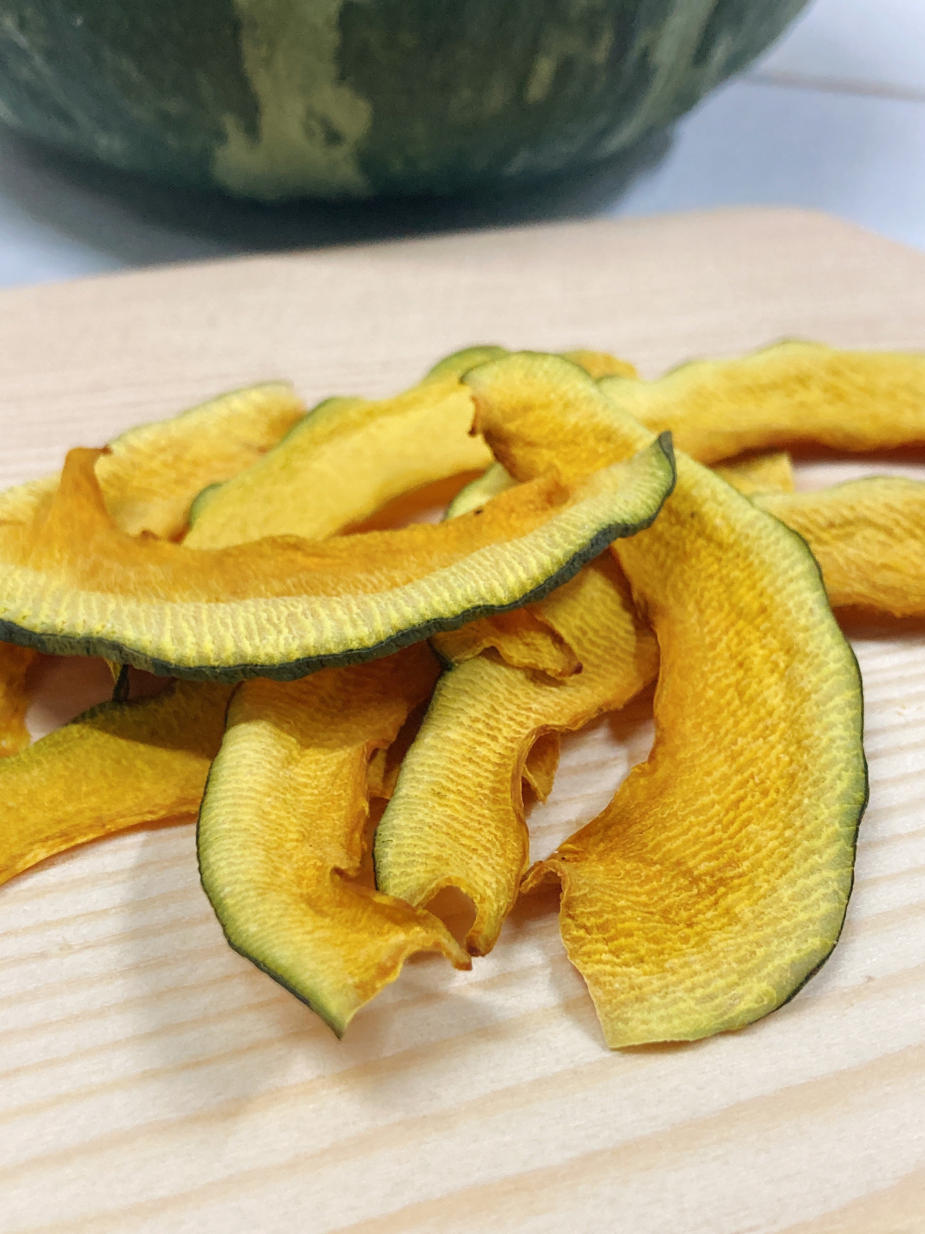 かぼちゃの甘味を引き出す為、低温でじっくりパリパリに焼き上げました。
