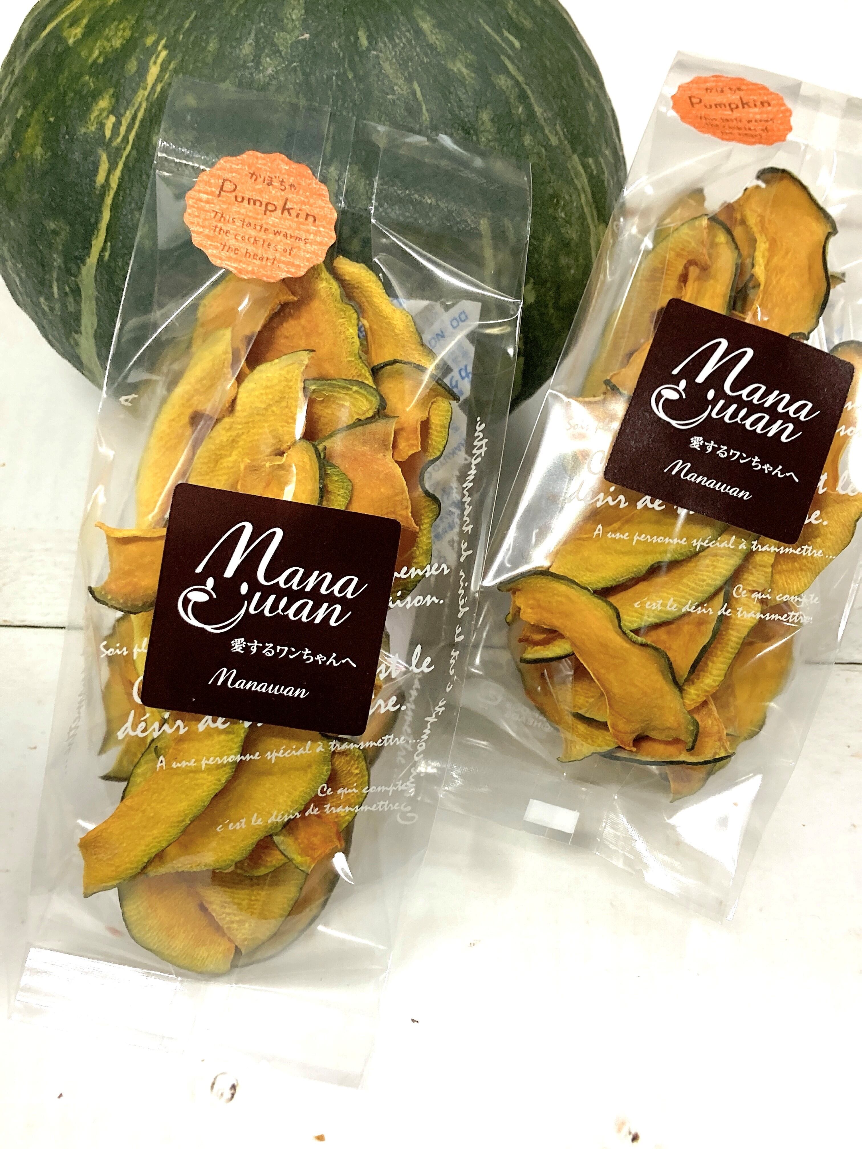食物アレルギーでお困りのワンちゃんにも安心して召し上がっていただける素材そのままかぼちゃチップス!